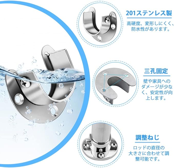↪【実用的なU字型設計 】:U型デザインのブラケット、台座には3つのネジ穴があり、壁や家具へのダメージが少なく、安定性が向上します。また、各U字型ブラケットの側面には、ポールの緩みを防止するために調整可能な固定ねじがあり、ロッドの直径の大きさに合わせて調整可能です。現代的なシルバーの外観は、ほとんどの家具と調和しています。