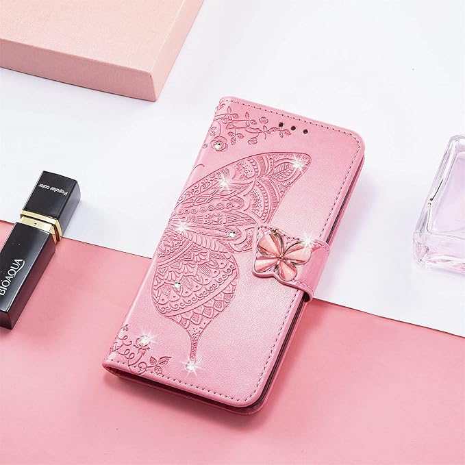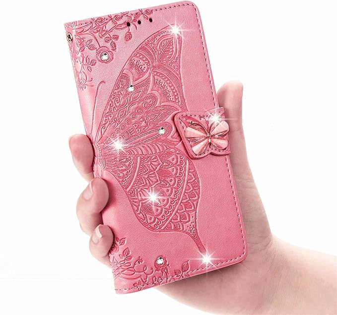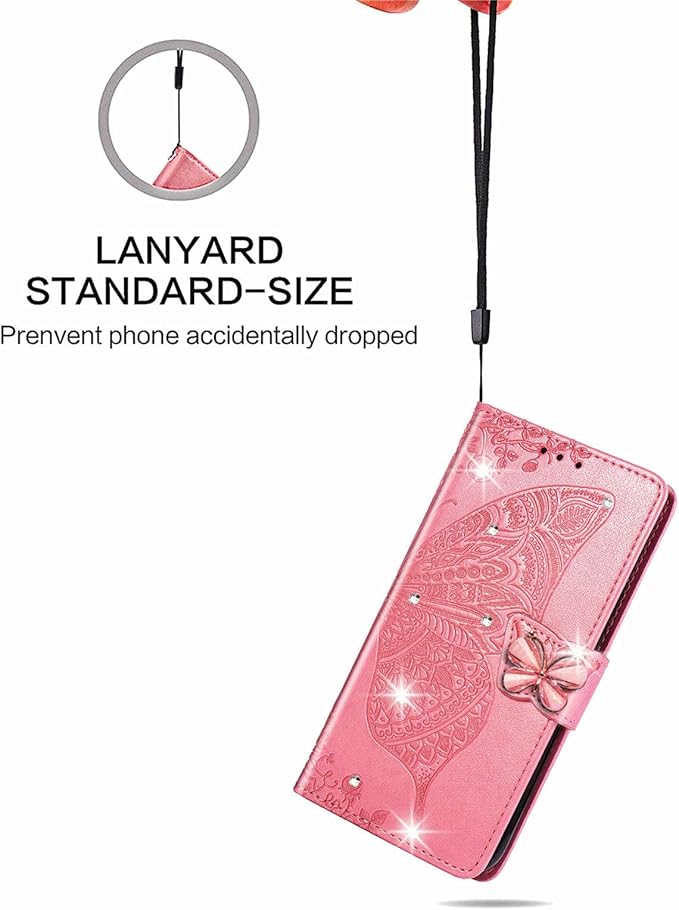 GejinFans に適用するらくらくスマートフォン F-42A / らくらくスマートフォン me F-01L 手帳型ケース 多機能携帯電話ホルダー バンプパターンテクスチャ耐久性摩擦耐性携帯電話ケース zバタフライピンク | etshop