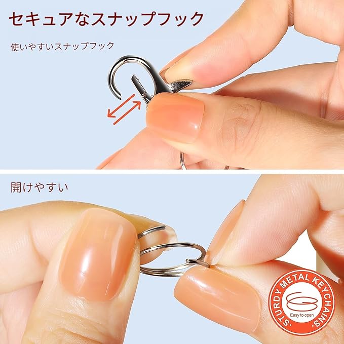 【キーリング付きキーホルダー パーツ】各ナスカン金具にはスプリットリングが付いており、穴や紐、クラッチを使って物をかけるのに便利です。簡単に開けることができ、変形しにくく、耐久性があり再利用可能です。