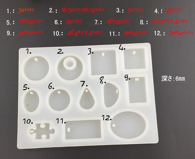 12種類の形が作れます、穴あきタイプなのでネックレスなどのアクセサリーのパーツに最適です。