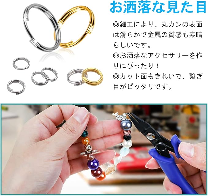 【シンプル&お洒落】 細工により、丸カンの表面は滑らかで金属の質感も素晴らしいです。お洒落なアクセサリーを作りにぴったり!カット面もきれいで、繋ぎ目がピッタリです。簡単おしゃれ、かわいいハンドメイドプレゼントに最適です。タップリ大容量で、人数の多いDIY活動や手芸活動で大活躍しますし、大量に使いたい時にも、作った手芸用品をアクセサリーに仕立てたいときにも便利です。