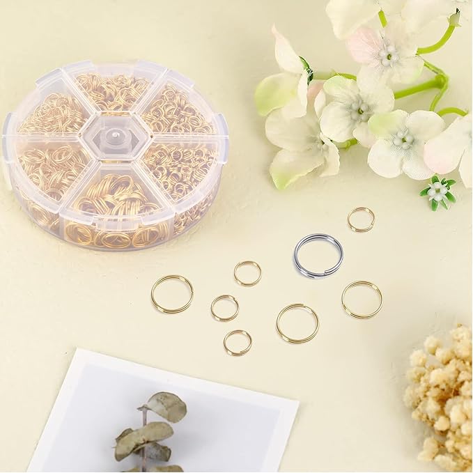 【たっぷり6サイズ】 プラスチック製の専用ケースは、サイズ別でリングを分けています。仕切りが付いているので、コンパクトに持ち運び出来ます。使いたいときは一目瞭然で便利です。4mm/5mm/6mm/7mm/8mm/10mmの幅広いサイズの二重丸カンが揃えており、ぜひハンドメイドアクセサリー作成にご活用ください。子供の芸術と工芸品のための素晴らしい材料、創造的なキットとして使用することができます。
