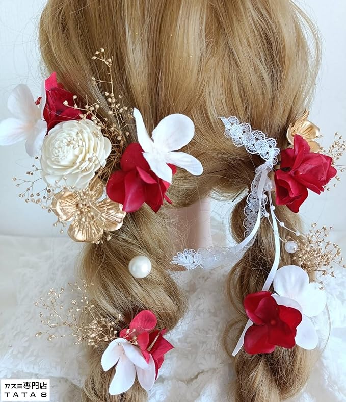 ワイヤー入りゴールドリボンを使用します。ある程度いろいろな形状にできさらにその形状が保持されます。髪型に合わせてご自由にお使いいただけます。光沢性のパールチェーンリボンを使用するゴージャスな髪飾りです。皆様の晴れ姿を全力サポートします。 【特徴】100%プリザーブドフラワー/ドライフラワーを使用しており、生花の様な美しさを楽しんでいただけます。 【使用場面】成人式、卒業式、結婚式、挙式、謝恩会、披露宴、二次会、デート、前撮り、ヘッドドレス、プレゼントなどのドライフラワー/お花/ヘッドドレスとしてお使い頂けます。 【使用上の注意】 ドライフラワー、プリザーブドフラワーは大変デリケートです。取り付ける際は直接花を触らず、Iピンの部分をお持ちください。 一部の材料が欠品の場合に類似品に変更してお届けします。 配送時の「花弁落ち」、自然由来素材のため「穴あきや虫食い痕」等ある場合もあります。また、枝ぶりや花、葉っぱの形も異なります。