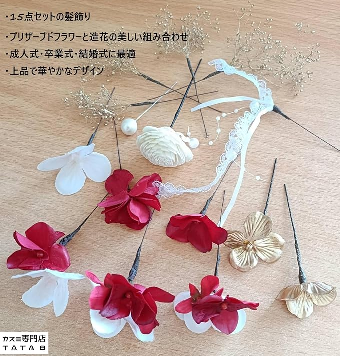 【素材】春桜造花、プリザーブドフラワー、すぐにお使いいただけるようすべてのお花にIピンが付きます。【補足】成人式振袖、卒業袴、着物、和装との相性は大変良いです。 輸送中にお花の形状は多少変形する恐れがありますが、手で解してあげれば元に形状に戻ります。 ご覧のモニター設定や光より色みが若干異なります。