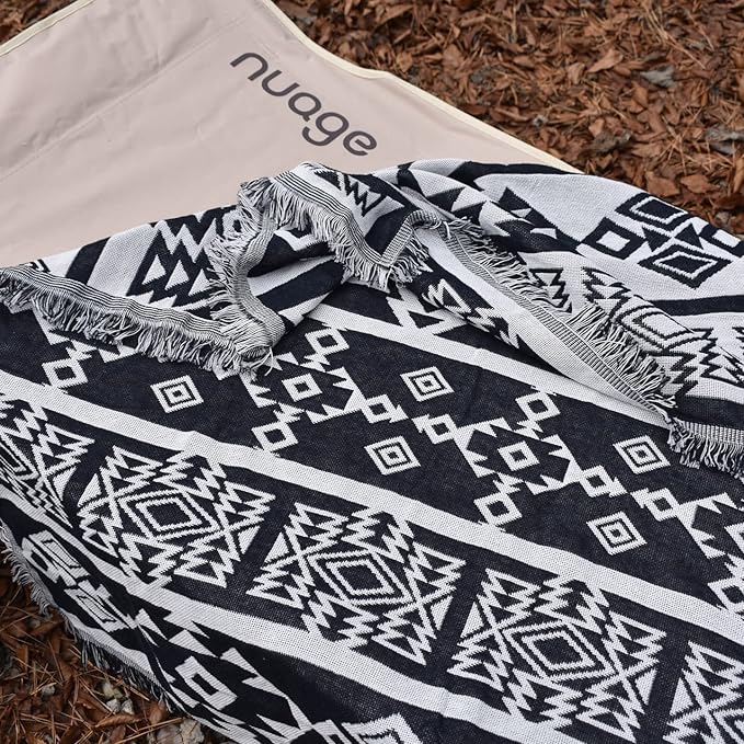 Peel Forest メキシカンラグ ネイティブ柄 エスニック柄,オルテガ柄 幾何学模様 キャンプラグ , アウトドア ブランケット 多機能 民族風 黒と白 大判 180X230cm | etshop