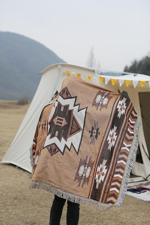 Peel Forest エルパソブランケット マルチカバーメキシカンラグ ネイティブ柄 オルテガ柄 キャンプラグ サドルブランケット 車中泊マット アウトドア バンライフ 130X160cm………
