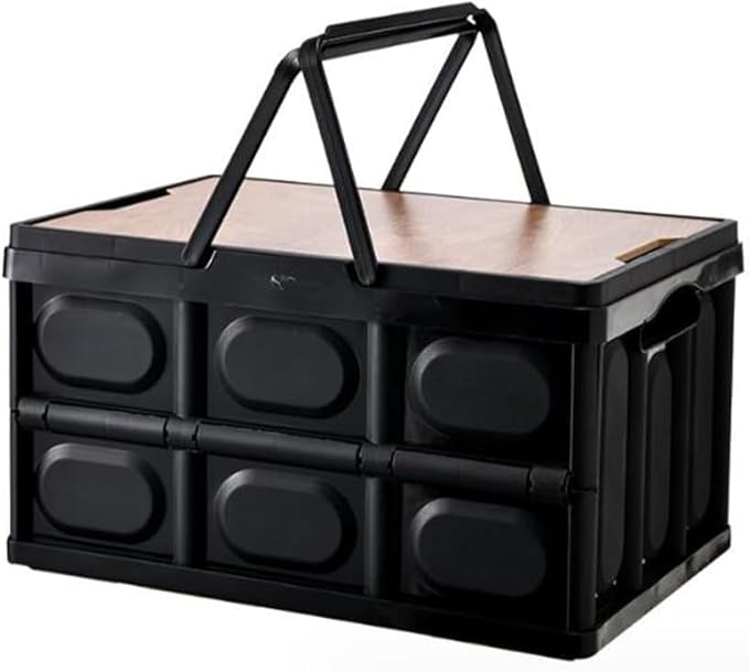 折りたたみコンテナ フタ付き 取っ手付き 56L 収納ボックス 木製蓋付き 大容量 アウトドア テーブル キャンプ 収納ケース 屋外 屋内 家庭用 組立簡単 衣類 衣装 車載収納 引っ越し 軽量 折り畳み スタッキング おしゃれ-グリーン||56L (ブラック) | etshop