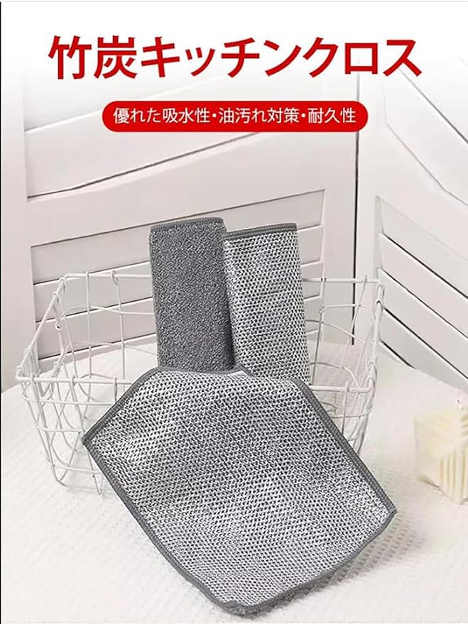リバーシブル竹炭キッチンクロス キッチンクロス 竹炭キッチンクロス 食器用キッチンタオル キッチン雑巾 強力な吸収性ワイヤーふきん ウェットドライクリ ニングクロス 掃除雑巾 食器洗い布 両面 布巾 吸水 家庭用 (10) | etshop