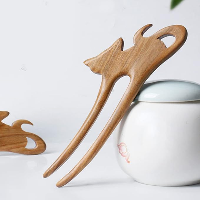 BESTOYARD かんざし 木製 ヘッドドレス 猫の形 髪飾り ヘッドドレス uピン 簪 和装アクセサリー シンプル 和装 浴衣 着物 ビンテージ ヘアアレンジ 1本