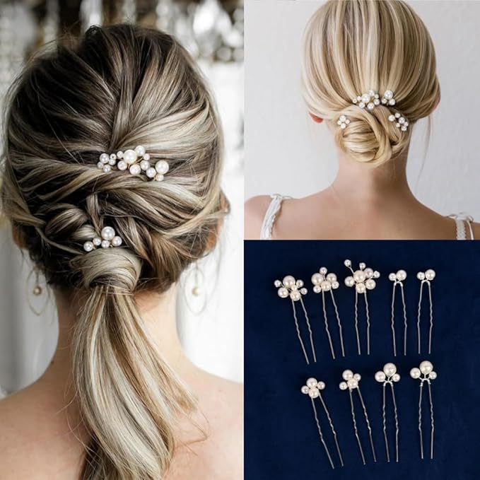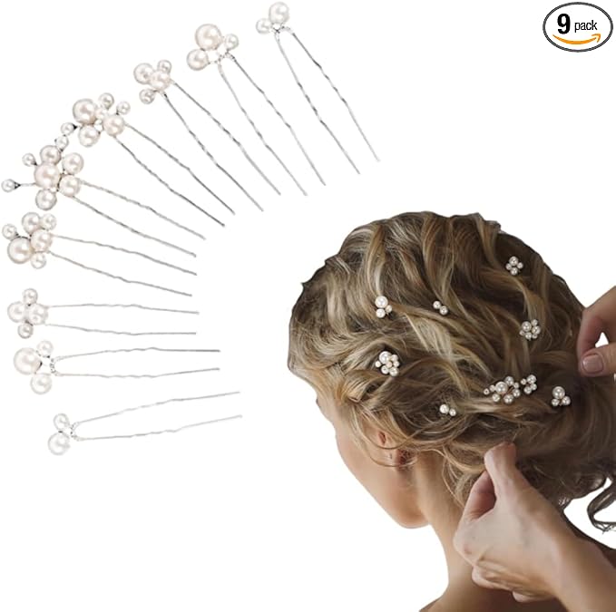 9本セットパールピン パール Uピン ヘアアクセサリー 髪飾り ヘアピン パール パーティUピン ヘアピン 結婚式 着物 成人式 卒業式 和装 花嫁 普段使い ウェディング パーティー 花嫁などの髪飾り用 おしゃれ プレゼント(銀)
