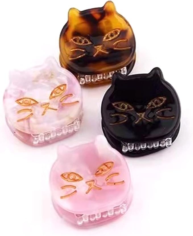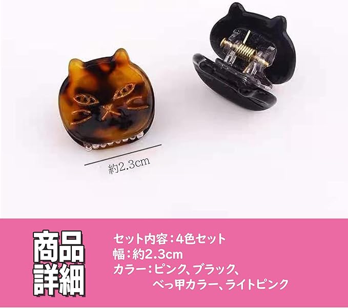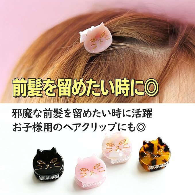 ネコ型デザインのミニヘアクリップ:可愛いネコ型デザインのミニヘアクリップセットです。クリップの幅は約2.3cmで、少量の髪の毛を留めたい時に活躍してくれることでしょう。