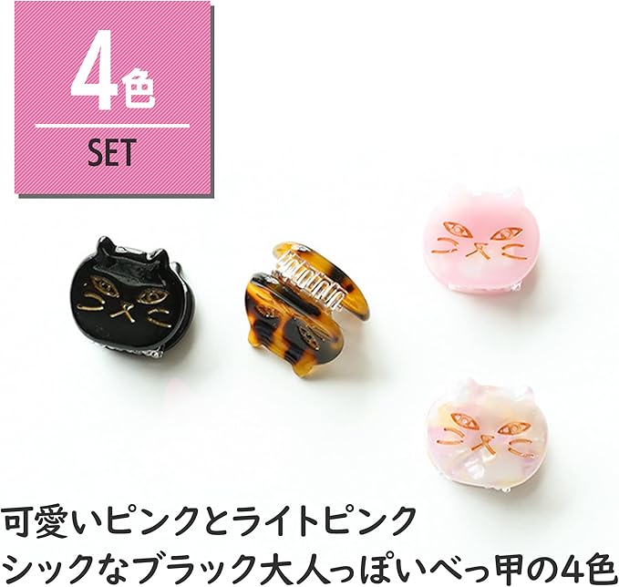 うれしい4色セット:可愛いピンクカラーやライトピンクカラー、シックなブラックカラー、大人っぽいべっ甲カラーの4色のヘアクリップが揃ったセット品をご用意しました。