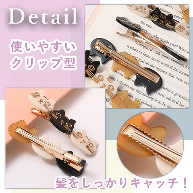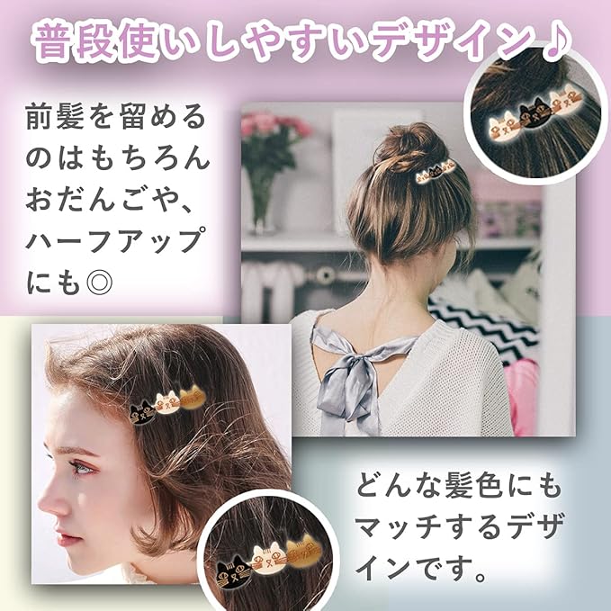 【猫ちゃんの顔が3つ並んでとってもキュート♪】かわいい物を身につけるとテンションって上がりますよね♪このヘアクリップは愛くるしい顔が3つ並んだ、ネコ好きにはたまらないデザインです。このヘアクリップを身に付けることで、3匹のネコちゃんがあなたをウキウキした気分にしてくれます♪