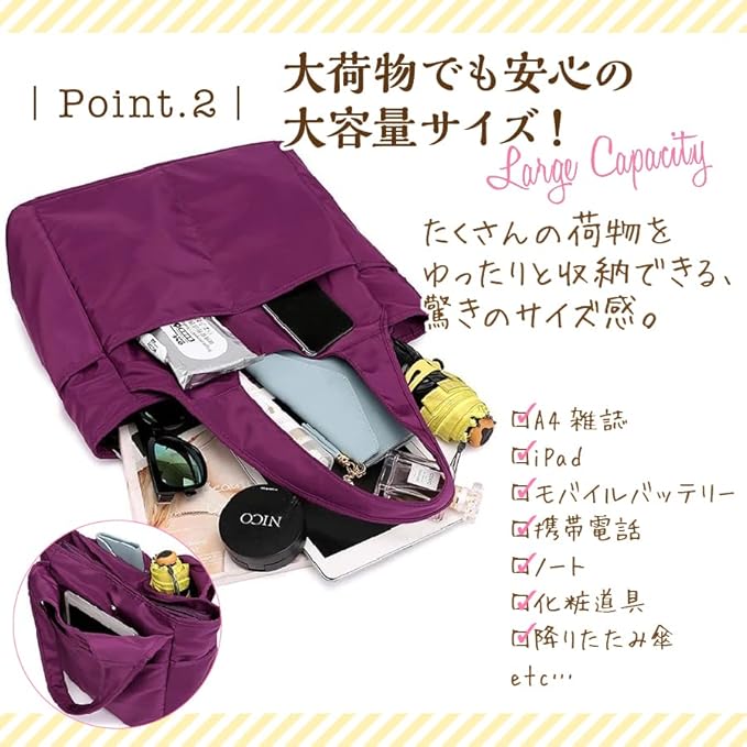 機能性とデザイン性に優れたトートバッグで、快適なお出かけをお楽しみください。