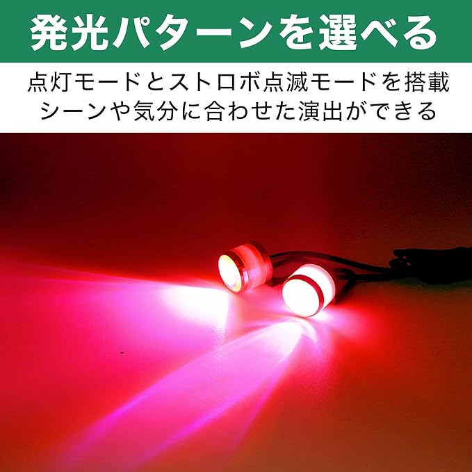 バイク以外でも広がる用途:ライトは径約22mm、奥行約24mmのコンパクトサイズ。12V対応で、バイクだけでなくキャンプやアウトドア用としてもご活用いただけます。装飾用やイベント演出にも使えるので、使い方の幅が広がります。
