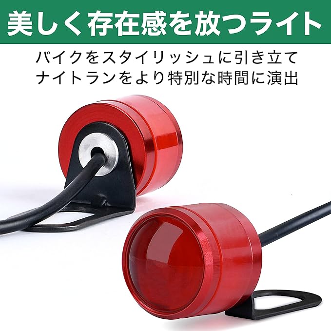 美しく存在感を放つストロボライト:ライトは丸形デザインで、バイクをスタイリッシュに引き立てます。LEDの輝きが夜道をしっかり照らし、走行中の存在感を高めます。レッドの光が視線を集め、ツーリングやナイトランをより特別な時間にしてくれます。