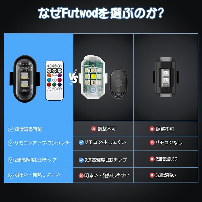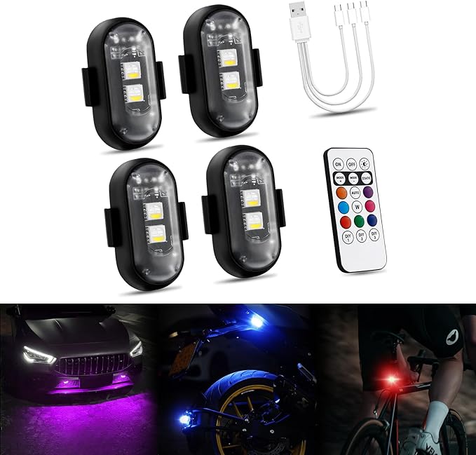 Futwod ストロボライト LEDライト 8色変化 バイクライト リモコン付き 小型 点滅ランプ USB 充電式 メモリー機能 非常信号灯 追突防止 汎用 車 自転車 バイク ドローン ストロボ LED 爆光 フラッシュライト 補助ランプ カーアクセサリー 警告灯 4個セット | etshop