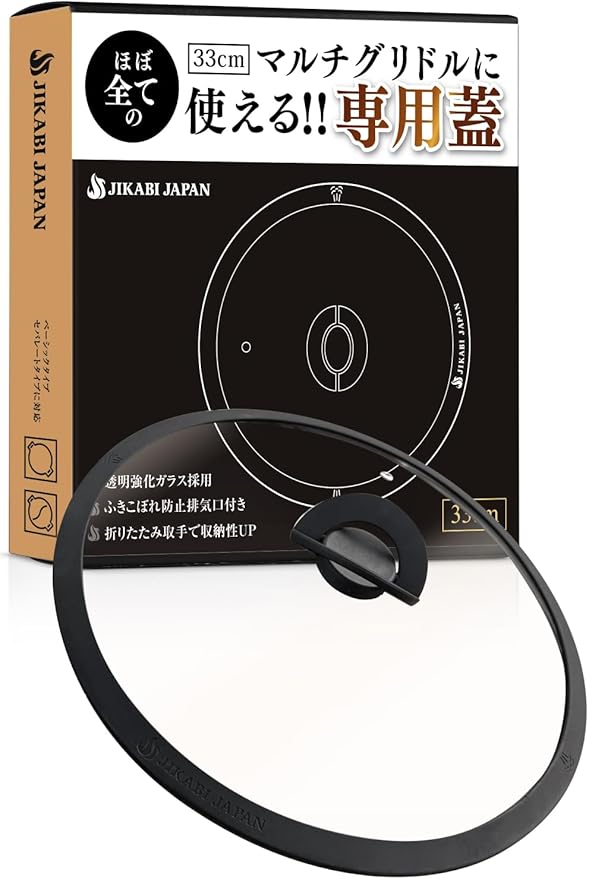 ✅【 商品詳細 】 ・内容:マルチグリドル用蓋 1点 ・サイズ:33cmマルチグリドル対応(※19cmには非対応) ・対応:JIKABI JAPAN純正/他社製を含むほぼ全ての33cmマルチグリドルに対応 ・素材:透明強化ガラス+耐熱シリコン ・特徴:透明の強化ガラス採用、排気口付き、折りたたみ取手