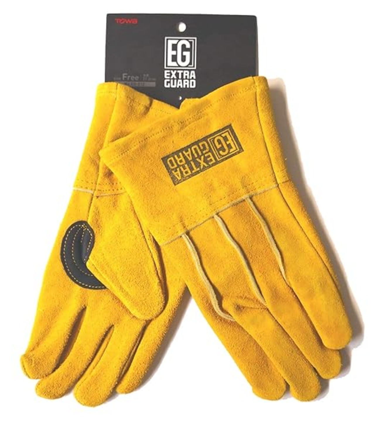 ハードな作業や繰り返しの使用で劣化やすい親指股に、黒銀当付き補強を施したプロ仕様。