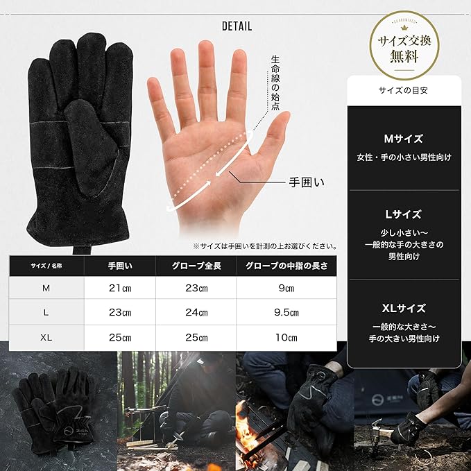 【サイズは3種類】 M (女性、手の小さい男性向け), L(少し小さい〜一般的な手の大きさの男性), XL(一般定な大きさ〜手が大きい男性向け) サイズ表を確認し手囲いを測定した上でお買い求めください。