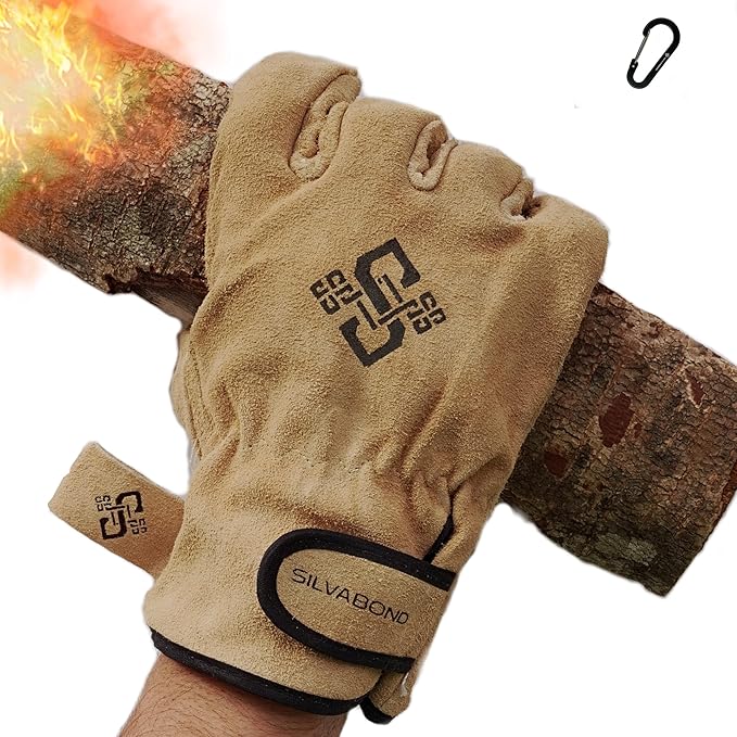 SILVABOND 【山羊革x3層構造x日本耐熱試験2種クリア】 耐熱 手袋 キャンプ グローブ やわらかい 本革 日本耐熱試験2種認定済み 耐熱3層構造 アウトドア 焚き火 BBQ 防寒手袋 ユニセックス カラビナ | etshop