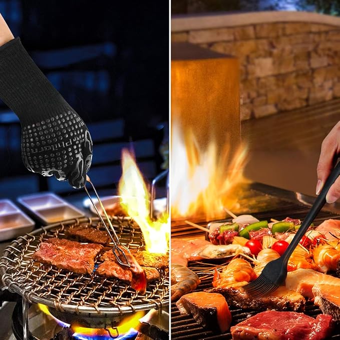 【5本指滑り止めデザイン】耐熱グローブは、掌部分にシリカゲル素材を採用し、滑り止め粒付き、摩擦力が大きくして、物を掴みやすくなります。使用中に耐熱手袋が滑らずに火傷の心配はありません。5本指構造で、指が動きやすく、伸縮性もあり、長時間着いても窮屈感ないし、つかむ、持つなどの細かい動作も円滑に行えます。この商品にはブラシが含まれていませんのでご注意ください。
