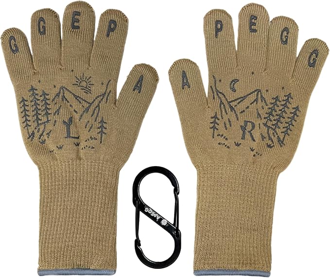 [APEGG] 耐熱グローブ 最高耐熱500℃ 5本指 アウトドア ミトン 手袋 滑り止め 防寒 耐磨耗 キャンプ BBQ 焚き火 登山 鍋掴み 園芸用 作業用 料理 グリル ガーデニング 付きS字型カラビナ 多用途手袋 左右兼用 男女兼用 | etshop
