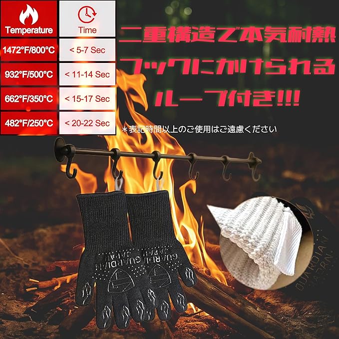 [GUARDIAN JAPAN] 耐熱手袋 最高800℃対応アラミド繊維より 耐熱性能 滑り止め付き 男女兼用 BBQ・焚き火・キャンプ・オーブン・調理など幅広く対応 洗える耐火ミトン 安心の日本企業 炎デザイン(ブラック) 1ペア入り 最高にかっこいいデザイン!!! | etshop