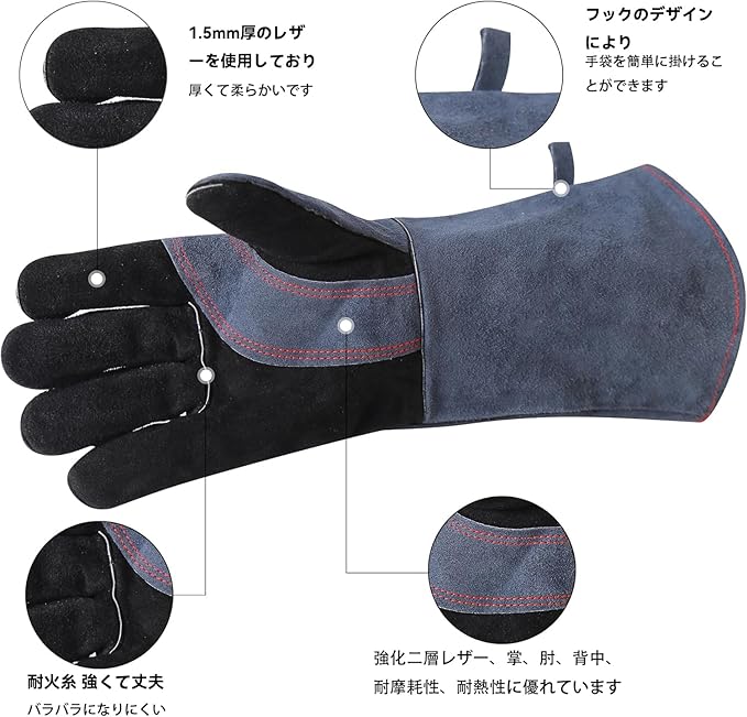 【前腕の優れた安全性】当社の40CMの超ロング手袋と19CMの袖は、優れた前腕保護を提供し、溶接の火花、研削破片、火災、裸火、熱い石炭、またはファイヤーピットや薪ストーブでの薪の燃焼に対して効果的です。これらの手袋は、最も困難な環境でも確実に保護します。