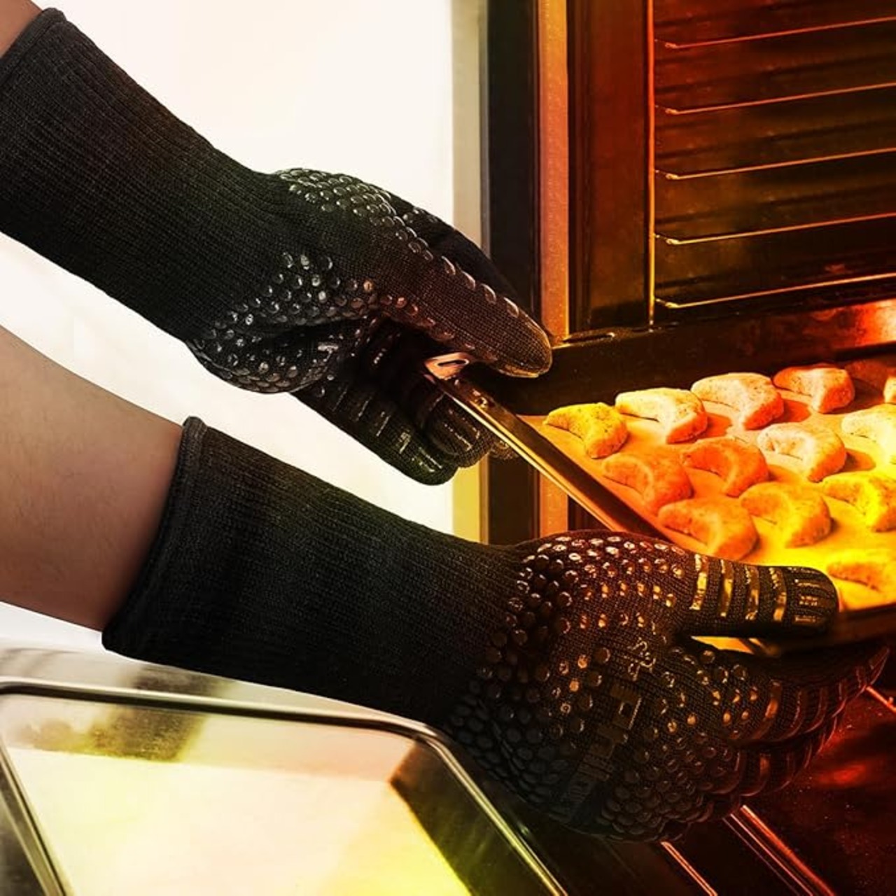 PHILORN 鍋つかみ 耐熱ミトン 5本指 耐熱 グローブ 手袋 バーベキューグ クッキンググローブ 耐熱温度800℃(瞬間温度)滑り止め 左右兼用 男女兼用 着脱簡単 五本指 オーブンミトン キッチン/台所/炊事/調理など幅広いにも適用 耐熱ミトン1足 黒い | etshop