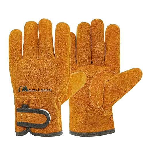 [MOON LENCE] 耐熱手袋 耐熱グローブ 牛革製 耐高温 耐摩耗性 キャンプグローブ レザーグローブ キャンプ BBQ 料理 アウトドア 薪ストーブ 焚き火台 作業用 XL DKST001