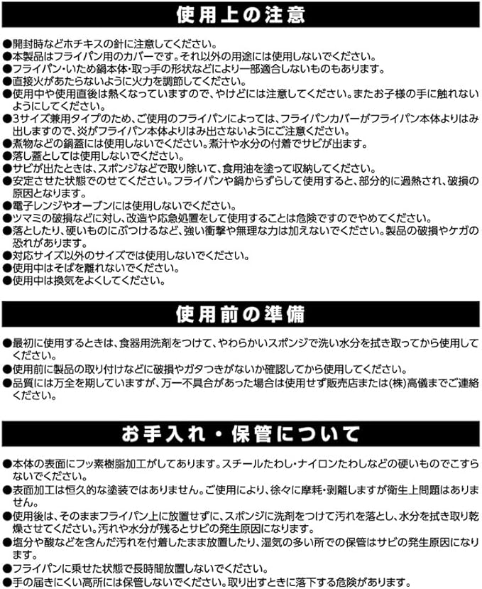 ※3サイズ兼用タイプのため、ご使用のフライパンによっては、フライパンカバーがフライパン本体よりはみ出ることがあります。