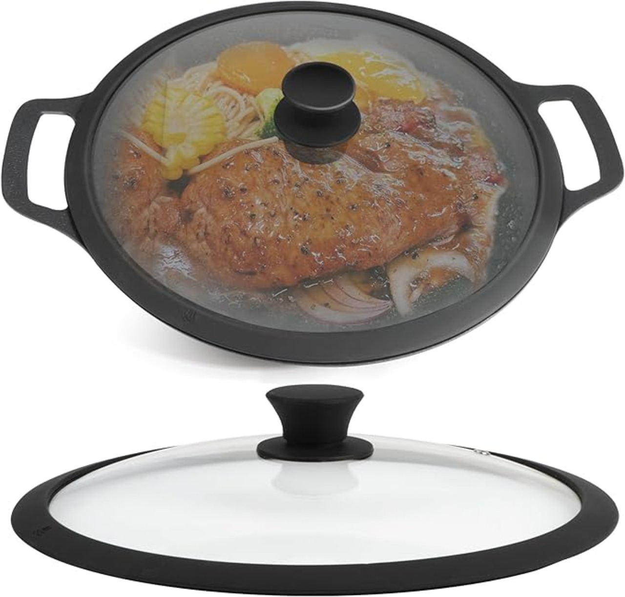 日本企業にて設計したマルチグリドル専用蓋をリリース。透明ガラスとシリコーンの作り合わせで、使い勝手が抜群