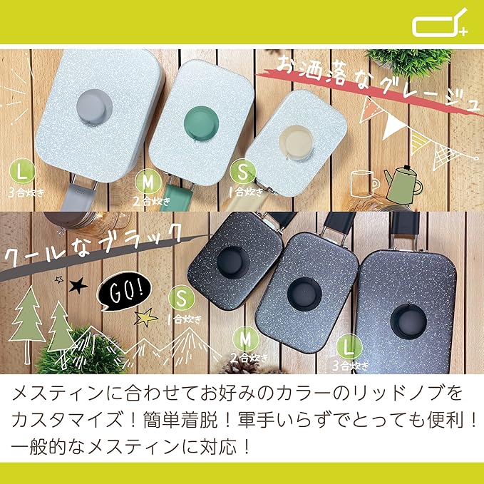 シリコン製の着脱式リッドノブ カラー:ベージュ/グリーン/グレー/ブラック 従来のメスティンの弱点でもある蓋の開け閉め。吸盤式の着脱式リッドノブ(フタつまみ)で問題解決です。 4カラーあるので、お好みのカラーを選んでメスティンをカスタマイズできます!