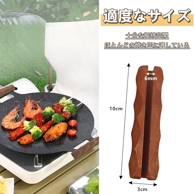 優れた断熱性で火傷を防止:この木製ハンドルは、天然の高品質な木材を使用しており、卓越した断熱性能を誇ります。高温の熱が伝わる焼き皿から手をしっかりと守り、火傷の心配を軽減します。初心者からプロのベイカーまで、どなたでも安心してご使用いただけます。