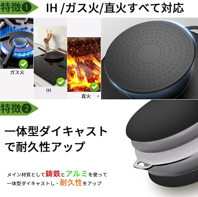 ✅【ご家庭/キャンプ大活躍】軽量化と焦げ防止に特化して開発しているので、アウトドア・キャンプ・バーベキューに最高。様々料理を簡単に作られるので、ご家庭内でも大活躍