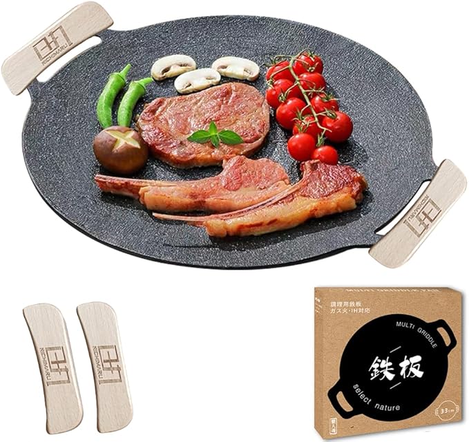 ✅【セット内容】29cmマルチグリドルパン本体1枚、専用収納バッグ、高級木製つかみ2個