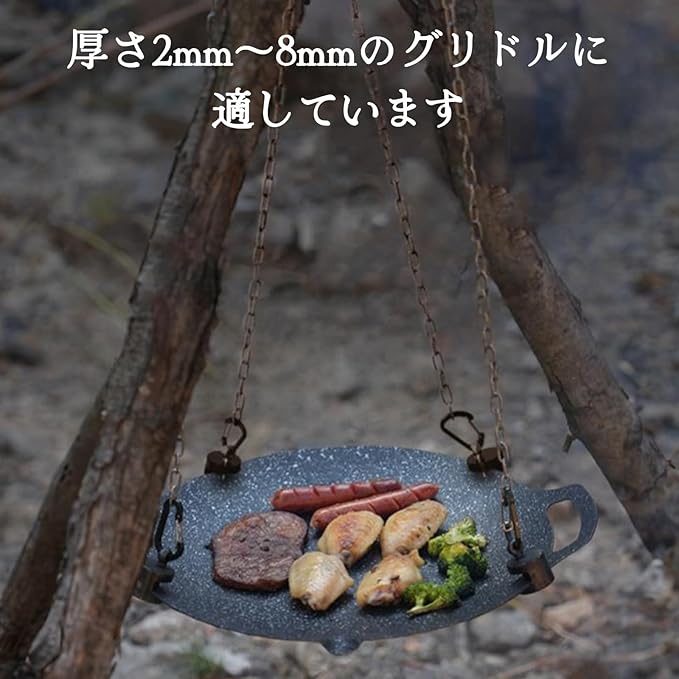 Seavy Captain マルチグリドル トライポッド 焚き火ハンガー アクセサリー グリルパンチェーンラック 安定信頼性の高い 軽量 厚さ2mm~8mmに対応 高さ調節可能 簡単インストール 耐食性 防錆性 黒 | etshop
