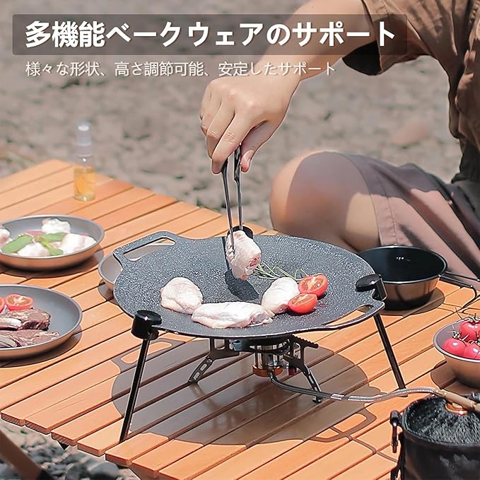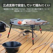 【安定性増加】三本アルミ合金製の脚でマルチグリドルのエンジを支えて底部はコンロに置いて火力を影響しない、倒れることはありません。