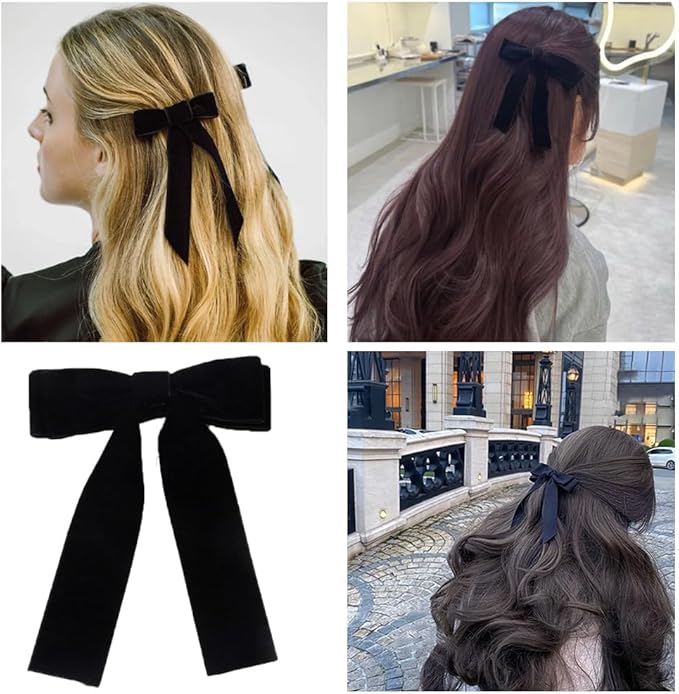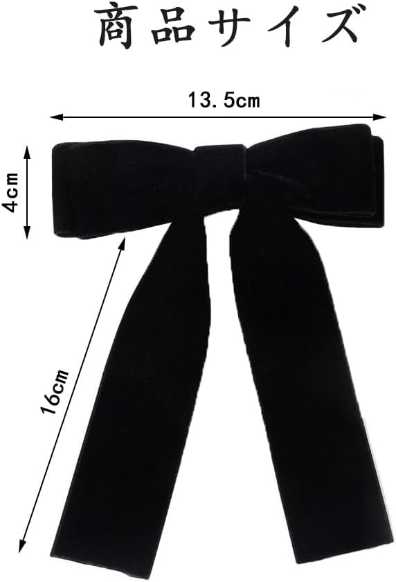 1.【トレンディなブラックヘアリボン】ベーシックでありながらスタイリッシュ、ソフトで心地よい手触り。エレガントなベルベット素材が、このヘアリボンワニ口クリップをすべての女性のクローゼットの定番にしています。普段使いはもちろん、フォーマルな装いに華を添えるマストアイテムのヘアリボンアクセサリーです。 2.【クリップ付きミディアムサイズヘアリボン】ヘアリボンリボンクリップは長さ13.5cm、幅4cm。大きすぎず小さすぎず、ほとんどの女性にちょうどいいサイズです。この黒いヘアリボンは、ロングヘアでもショートヘアでも、太い髪でも細い髪でも、どんな服装やヘアスタイルにもエレガントさと魅力を加えるのに最適です。ハーフアップ、お団子、おさげ、ポニーテール、三つ編みなどに最適です。 3.【軽量&長持ち&しっかり留まる】このガールズリボンクリップは装着がとても簡単で、しっかり留まるので、一日中留まります。丈夫で高品質なので、何度使っても長持ちします。バッグにつけたり、クリップで留めたり、使いやすく持ち運びにも便利で、いつでもどこでも簡単にヘアスタイルを楽しめます。 4.【様々なシーンで活躍】ベルベットのヘアクリップは完璧な仕上げです。感謝祭、クリスマス、ハロウィンコスチューム、お祭り、誕生日、結婚式、学校、普段着に最適です。どんなイベントでも、どんなヘアスタイルも難なく引き立てます。 5.【ハッピーシェアリング】彼女が絶対に気に入る贈り物 - 黒のヴィンテージヘアリボンは、あなた自身、あなたの母親、祖母、娘、孫娘、友人、同僚への贈り物に最適です。あなた/彼女のスタイリッシュで愛らしい見えるようにします。