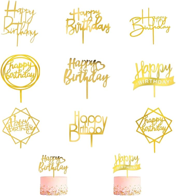 YAARUJEE ケーキトッパー 誕生日ケーキ 飾り 9種類セット ケーキピック ハッピーバースデー 飾り アクリル製 ゴールド おしゃれ デコレーション ケーキ挿入カード パーティー装飾