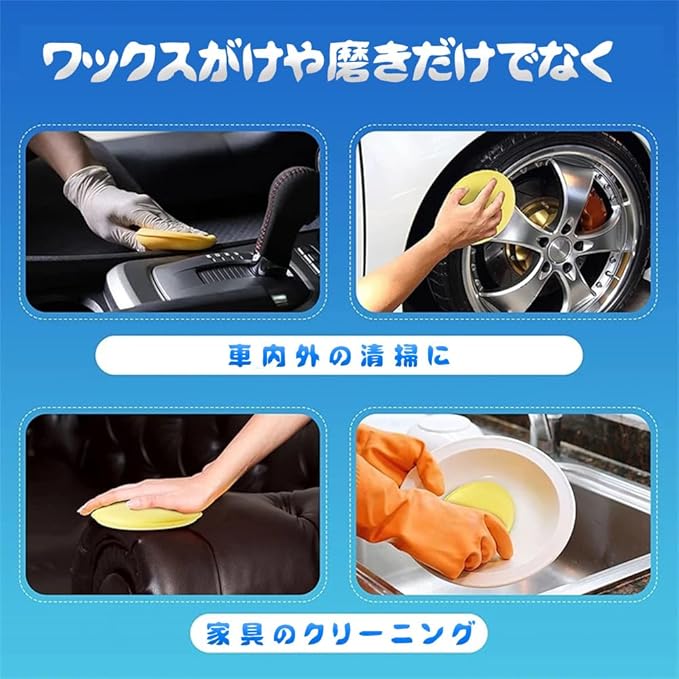 【用途が広い】超微細繊維塗布マットは自動車塗装、車内計器板、バンパー、皮ソファ、家具、床、タイル、メッキ部品などに適している。ヒント:自動車ワックス塗布マットを使用しない場合は通風所に置いてください。硬く乾き、清潔を維持します。もう一度使う必要があれば、スポンジを浸すだけでいい。