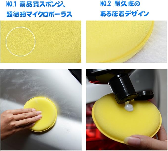 YAARUJEE 洗車 スポンジ ワックス スポンジ 12枚入り イエロー 直径10cm 丸型 ワックスアプリケーター 研磨スポンジ ポリッシング ソフト 軽量 塗りやすい 汚れ落とし ワックス 洗車用品 | etshop
