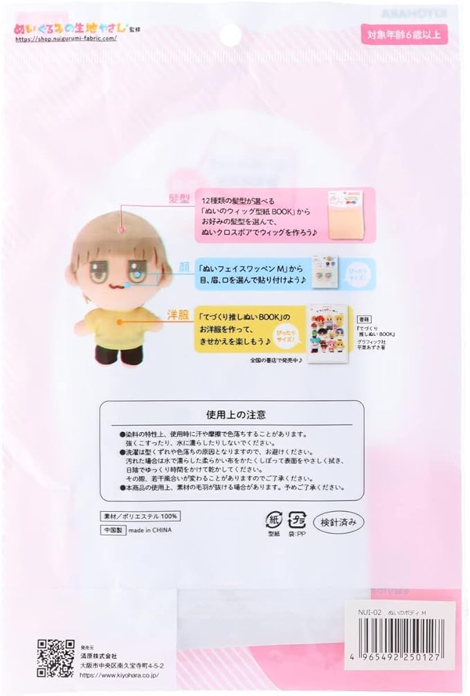 セット内容:ぬいのボデイ1体・ マッシュショート の ウィッグ が作れる 実物大 型紙 ・ レシピ が見れる QRコード