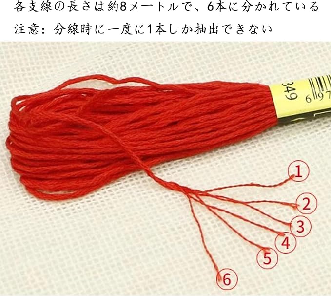 【サイズ】1 本あたりの刺繍糸の長さは約 8m で、6 本ずつ綴りになっています。