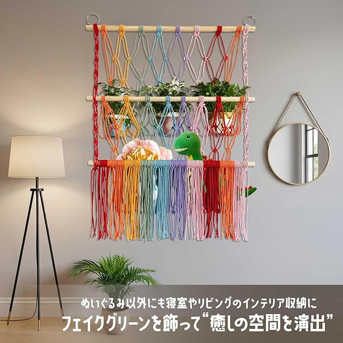 Percy’s Caravan ぬいぐるみ 収納 ハンモック 吊り下げ収納 壁掛け ピンフック付き ディスプレイ おしゃれ 省スペース ぬい活 推し活 人形 部屋 北欧風 インテリア ウォールポケット (レインボー) | etshop