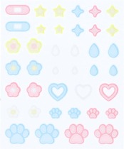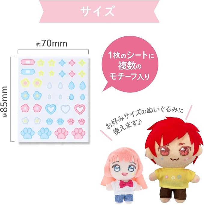 1つのシートの中に複数のモチーフデザインが入っており、ぬいのサイズを問わずご使用いただけます。