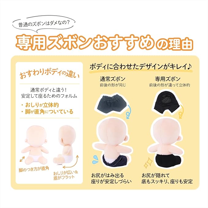 サイズ:wawaちゃんおすわりタイプ 専用ズボン 約20cm用(ぬいのボディ:NUI-23)