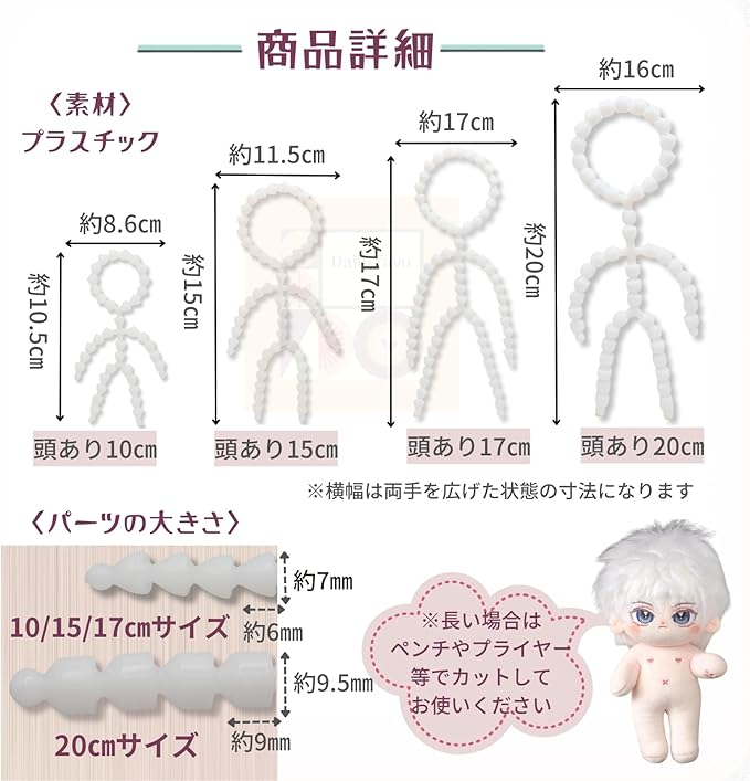 ❤ぬいぐるみ・お人形・マスコットの可動式 骨格パーツ、トイスケルトンです。内部に入れ込むことで骨組みの役割を果たし、自由にポーズを取らせることが可能なので、オリジナルの可動ぬいぐるみを作ったり、推しぬいをカスタマイズして楽しむことができます。
