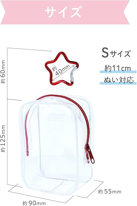 商品本体サイズ:W約92mm H約125mm D約55mm(約11cmぬい対応Sサイズ)